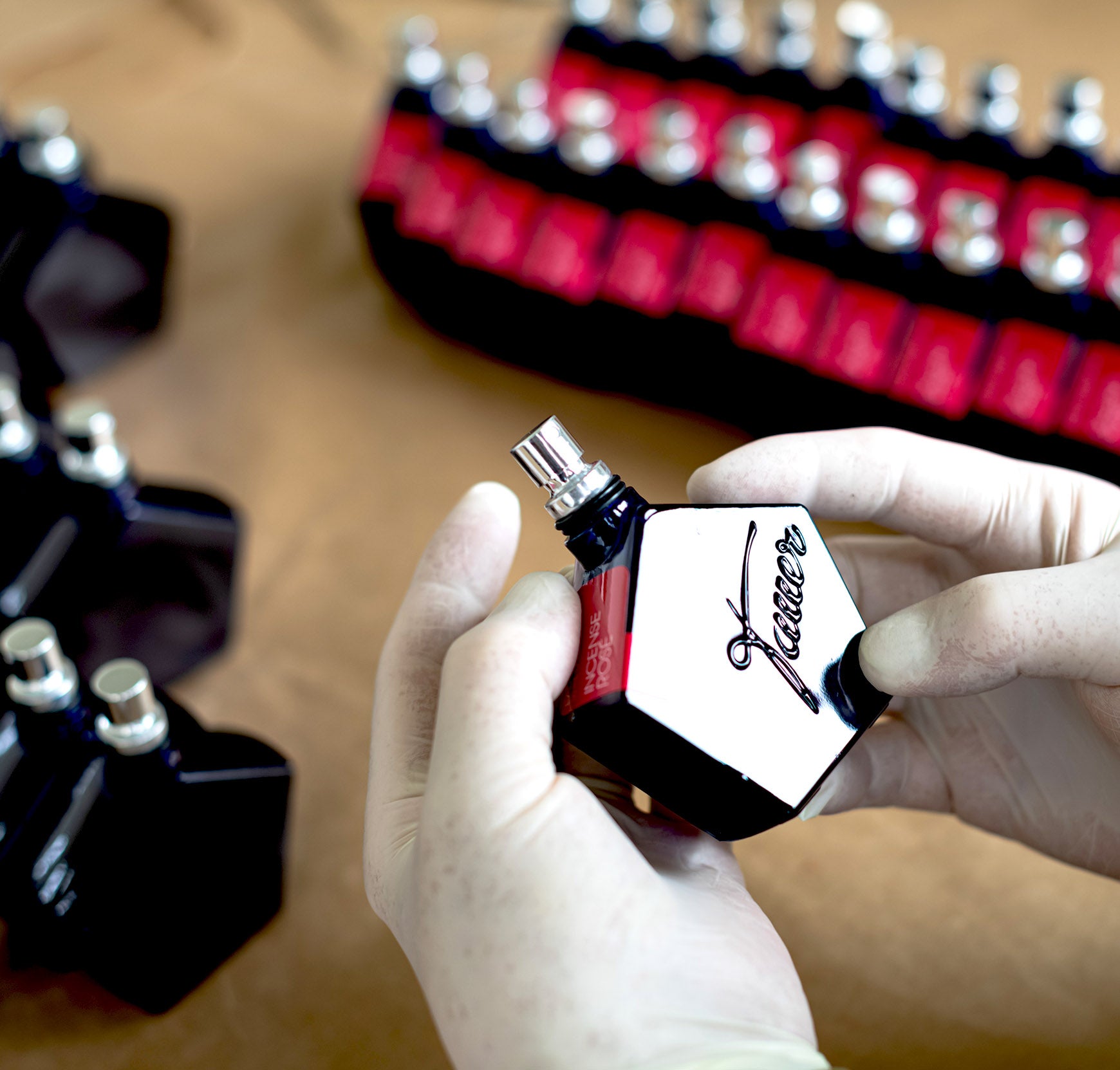 Our labels are made in Germany with high-tech precision and placed by our hand on every bottle in the Perfume Manufacture in Zurich.